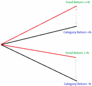 One of the criteria for measuring fund performance is the extent to which the fund manager can react to changes in market conditions to the extent permitted by the fund’s charter. In response to changes in market conditions, the fund manager will take offensive or defensive measures by increasing/decreasing/adding/subtracting certain asset classes in the fund portfolio to the extent permitted by the fund’s charter. The outcome of these measures is indicative of the fund manager’s timing ability. SAHA assesses timing ability by measuring the extent to which the fund’s return diverges from the return of its category (class). Ideally, the fund return should be a higher positive value during periods when the fund’s category (class) return is positive, and either a positive or a lower negative value during periods when the fund’s category (class) return is negative.