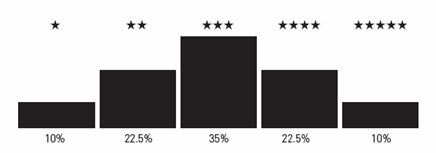 Each fund is rated within its class (category). SAHA weights the 5 criteria listed above for mutual funds and 6 criteria for pension funds according to its proprietary methodology to determine the final grade. After the final grade is determined, five (5) stars are allocated to the top 10% of the fund class (category), four (4) stars to the next 22.5%, three (3) stars to the next 35%, two (2) stars to the next 22.5% and one (1) star to the last 10%.