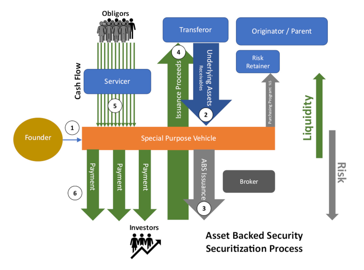 - The founder financial institution establishes an “Asset (or Mortgage) Backed Financing Fund” (Special Purpose Vehicle).